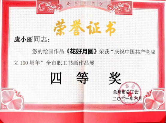 2021年兰州市教职工书画展上,她的作品从数百件参赛作品中脱颖而出,同时斩获二等奖和四等奖。这份艺术修养不仅丰富了她的课堂,更让传统文化之美浸润学生心田。